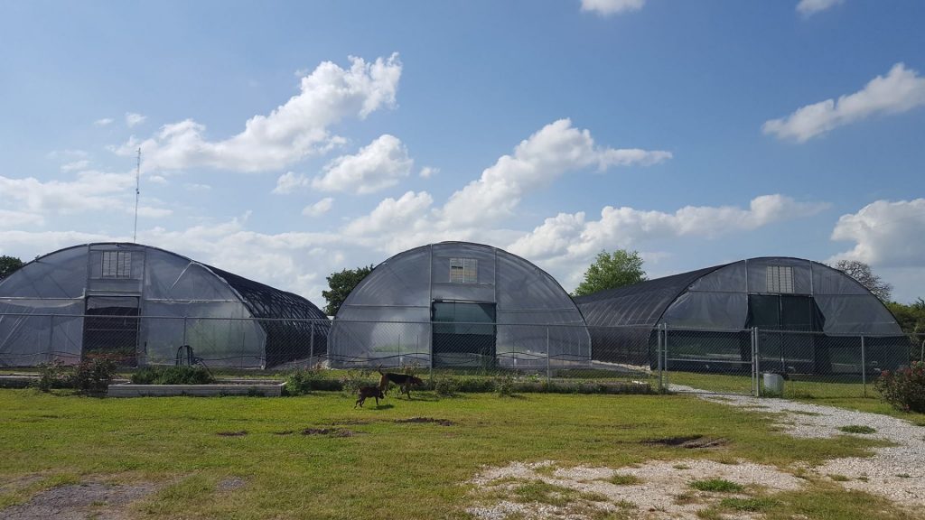 Our third above-ground greenhouse was started in April 2014. This greenhouse was specifically designed to house our fruiting plants that need trellising. Various varieties of tomatoes, peppers, cucumbers, beans, and squashes are planted in a medium of compost. These plants are then watered with natural nutrients using a drip irrigation system.