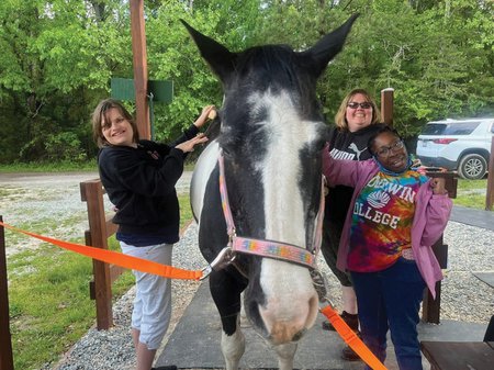 In addition to the children who come to the farm daily for sessions, whether through Social Services programs or self-pay, the farm welcomes everyone. Twice a month, a gathering of amazing people with intellectual and developmental disabilities from Transitions Day Support Services comes to spend time with horses and other animals.