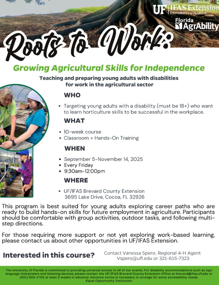 This program combines hands-on skill training, classroom instruction, and work-based learning experiences to engage participants in the agricultural sector. The team of UF/IFAS faculty, certified Master Gardeners, and dedicated volunteers work with the participants in the greenhouse, garden, classroom, and on field-trips, to foster critical skills necessary to be successful in the workplace.