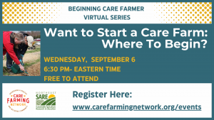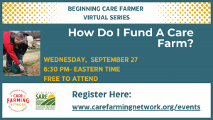 Care Farming Network hosted a 4-session series in September 2023. Each session focused on a specific topic that aspiring care farmers must consider as they begin their journey. The recorded sessions are available to view below, and each session includes a resource page with helpful information.