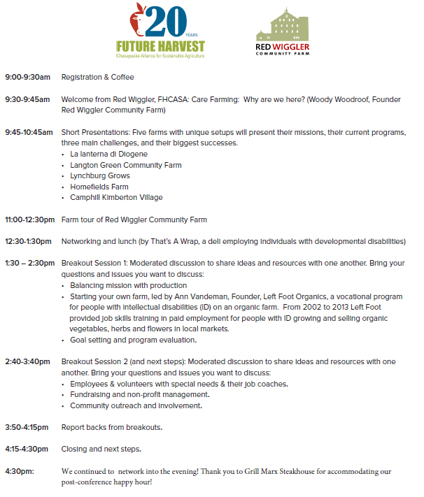 Here is the agenda for the Mid-Atlantic Care Farming Summit:
