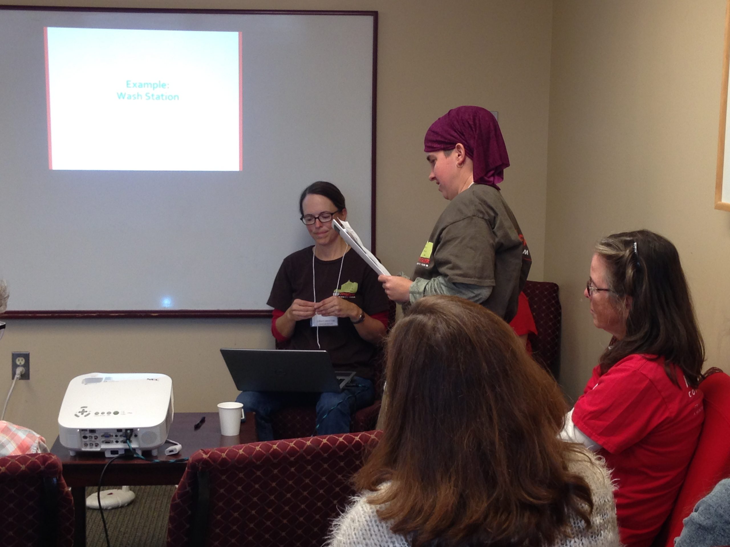 In the second presentation, Melissa discussed the nuts and bolts of managing daily farm tasks within an inclusive environment of employees and volunteers. She discussed strategies to utilize each person’s strengths to complete farm tasks and how to match up individuals with and without disabilities to make the best farm teams. Sam shared how she has grown as a leader at the wash station, Elaine presented the multi-step process for planting kale, and Katie talked about best practices for managing a large group of 20 volunteers. Afterwards, a workshop attendee, who has a child with Down syndrome, commented how thrilled she was to see Red Wiggler’s employees with developmental disabilities included in presenting.