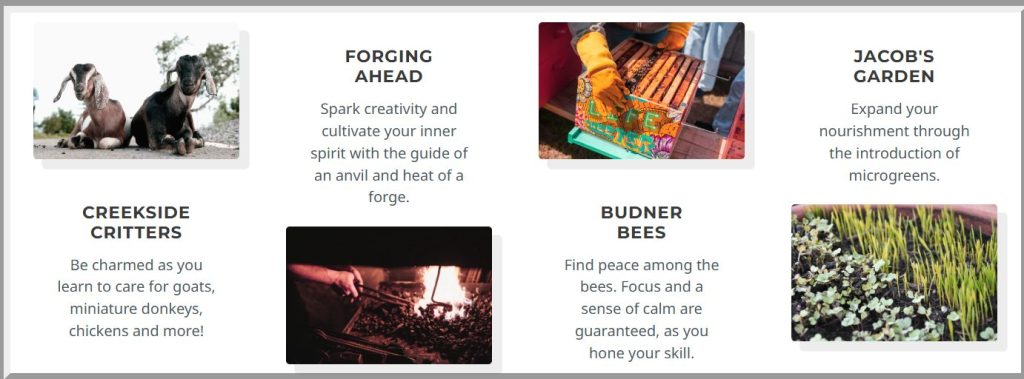 We serve the local community with an emphasis on disabled veterans. Our facility enables self-discovery and positive lasting change through cultivation of the mind, body, soul, and environment. Our customizable programs provide unique, hands-on, educational experiences in blacksmithing, beekeeping, and livestock care.
