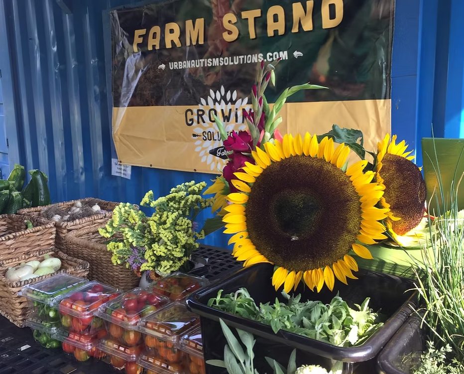Growing Solutions Farm is a 1.2-acre produce farm where young adults with autism and related challenges gain vocational and social skills while getting outside in the fresh air. The farm includes a large growing space, a high hoop house, a cooling shed, composting bins, and an outdoor tented classroom. The farm grows more than 100 varieties of vegetables, herbs and flowers.