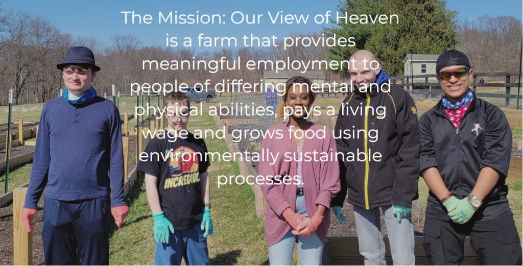 Our View of Heaven is a farm that provides meaningful employment to people of differing mental and physical abilities, pays a living wage and grows food using environmentally sustainable processes.