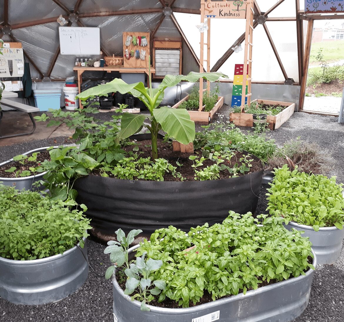 Eliada has deep agricultural roots, serving as a working farm since the early 1900’s. Today, Eliada’s Campus Farm program provides fresh organic produce, agricultural education opportunities, and community-based agritourism events to students at Eliada and the greater Asheville community. Our farm features several production spaces including a geodesic Grow Dome, Hoophouse, Corn Maze, and Learning Garden. With these garden spaces, we are equipped to grow food year-round. A majority of the produce grown on campus goes directly to our central kitchen, traveling only a hundred yards, and is prepared for student meals weekly. Excess produce is sold to local community partners who support food justice work in our community.