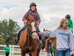 Recreation opportunities range from therapeutic horseback riding to school break programming, an accessible fishing pond and playground. All ARISE at the Farm programs are inclusive and welcome people of all abilities.