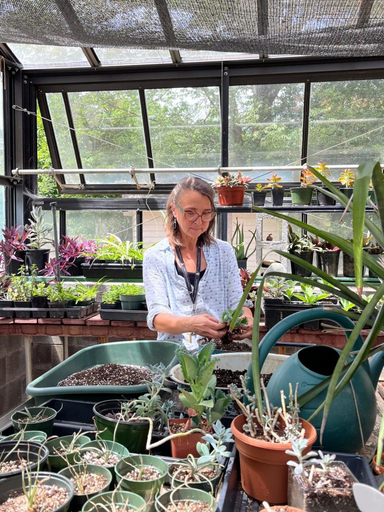 Social workers and other helping professionals gathered on campus in mid-July to learn more about “Green Care: Theory & Practice.” This session, which combined attention to theories related to green care and care farming with current research and example activities, earned six contact hours of continuing education for clinical social workers, including one devoted to ethics. A series of greenhouse-based activities were included throughout the day, ending with participants potting up plants for “Houseplants for Happiness,” a program providing healthy and hearty houseplants to people in permanent supportive housing.