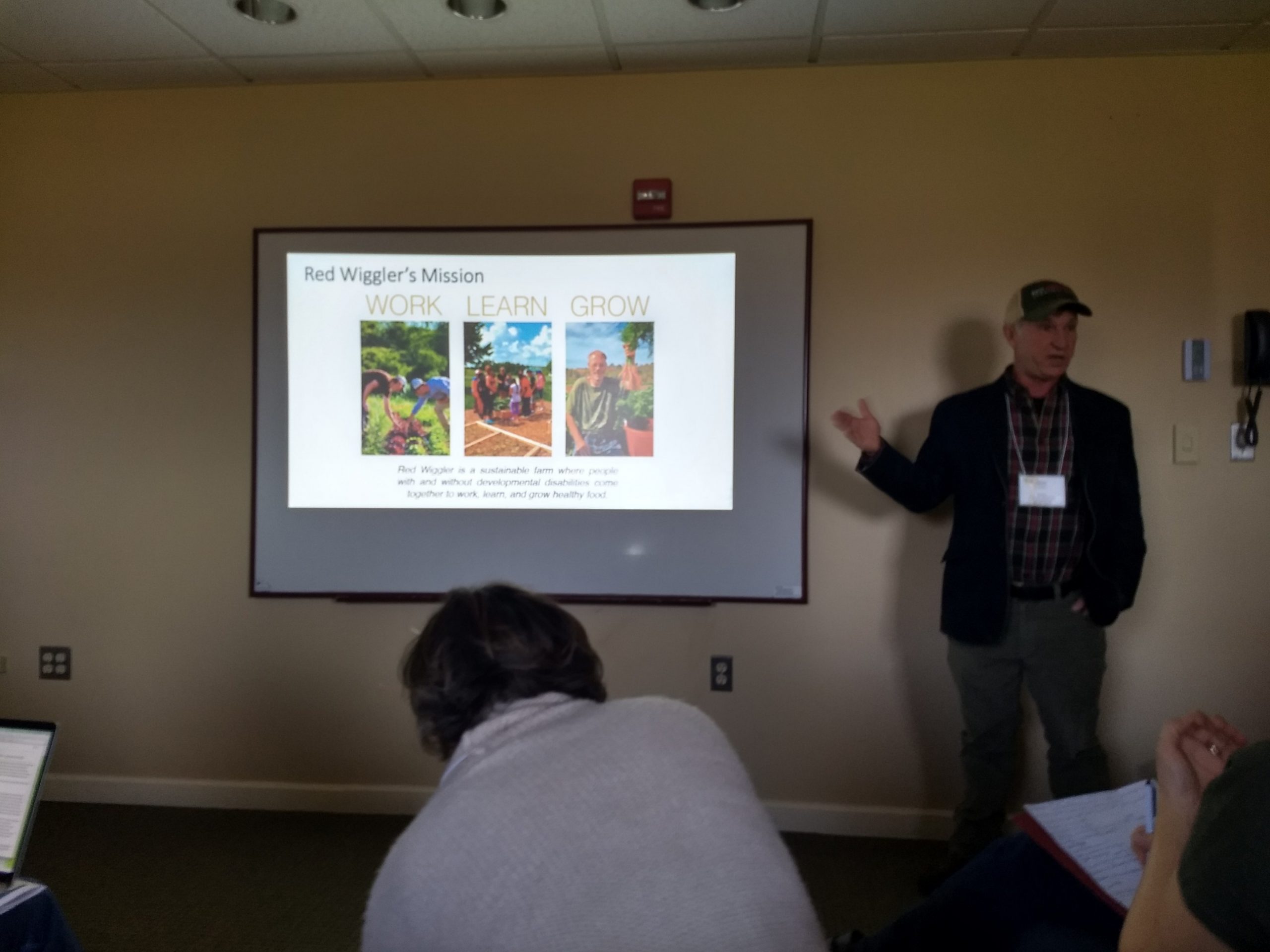 As part of the Farm-Based Education Conference, Red Wiggler staff presented two workshops, sharing lessons learned and standard practices developed over 24 years of operating. Woody Woodroof, Executive Director, presented on “Funding a Care Farm and the Red Wiggler Story,” and Melissa McLearen, Farm Manager, and Katie Junghans, Volunteer Coordinator, presented “Matching Abilities to Farm Jobs and Tasks” along with Growers Sam Sheehan and Elaine Fickenscher.